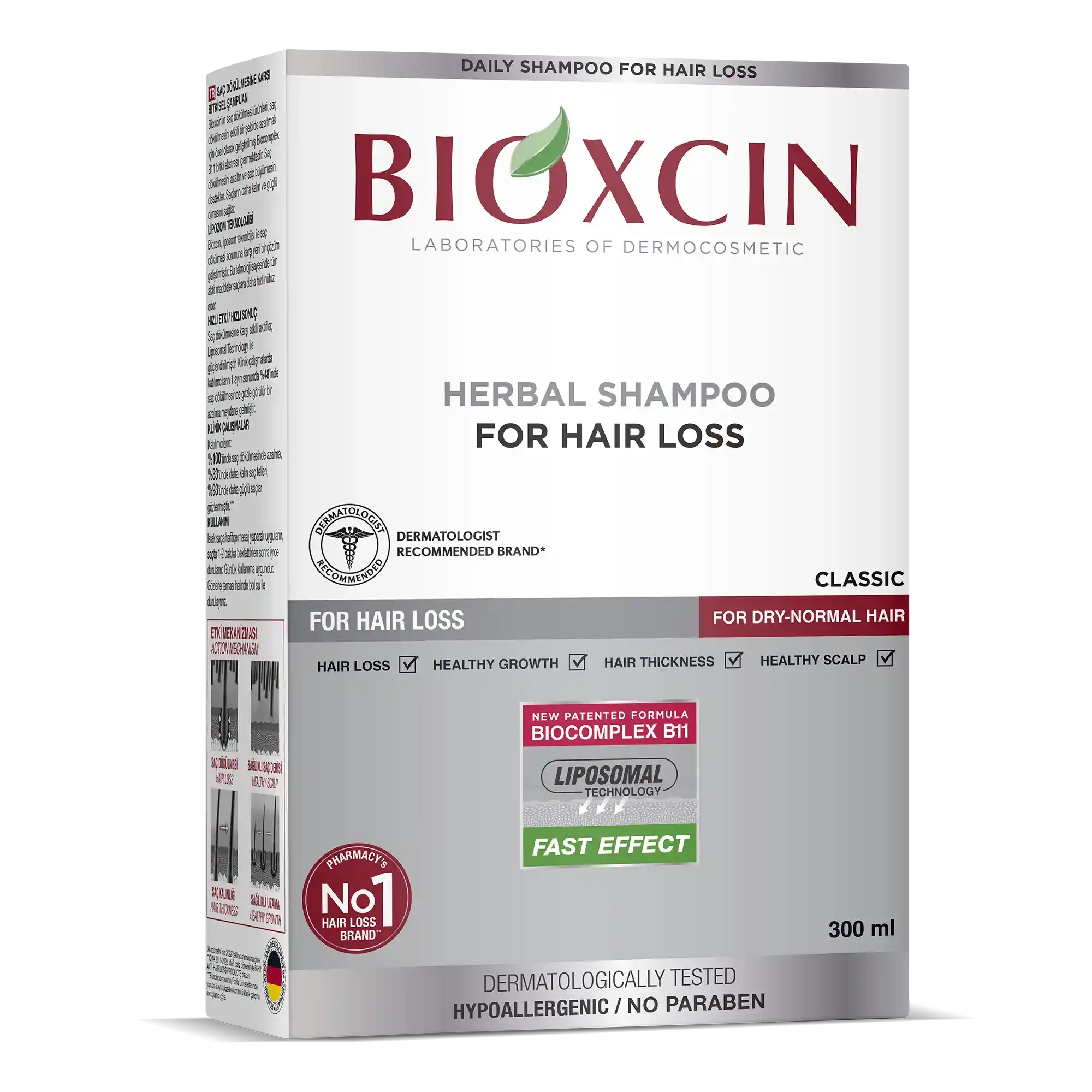 Pflanzliches Shampoo für Normales und Trockenes Haar. Das Shampoo ist durch die BioComplex B11 Formel und die LIPOSOMALE Technologie für den täglichen Verbrauch geeignet. Die Liposomen-Technologie sorgt dafür, dass die Wirkstoffe den Haarwurzeln schneller und effektiver erreichen. Es sorgt für stärkere und dichtere Haare und reduziert Haarausfall. Hilft dem Haar lebendig, stark und gesund auszusehen und enthält keine Farbstoffe